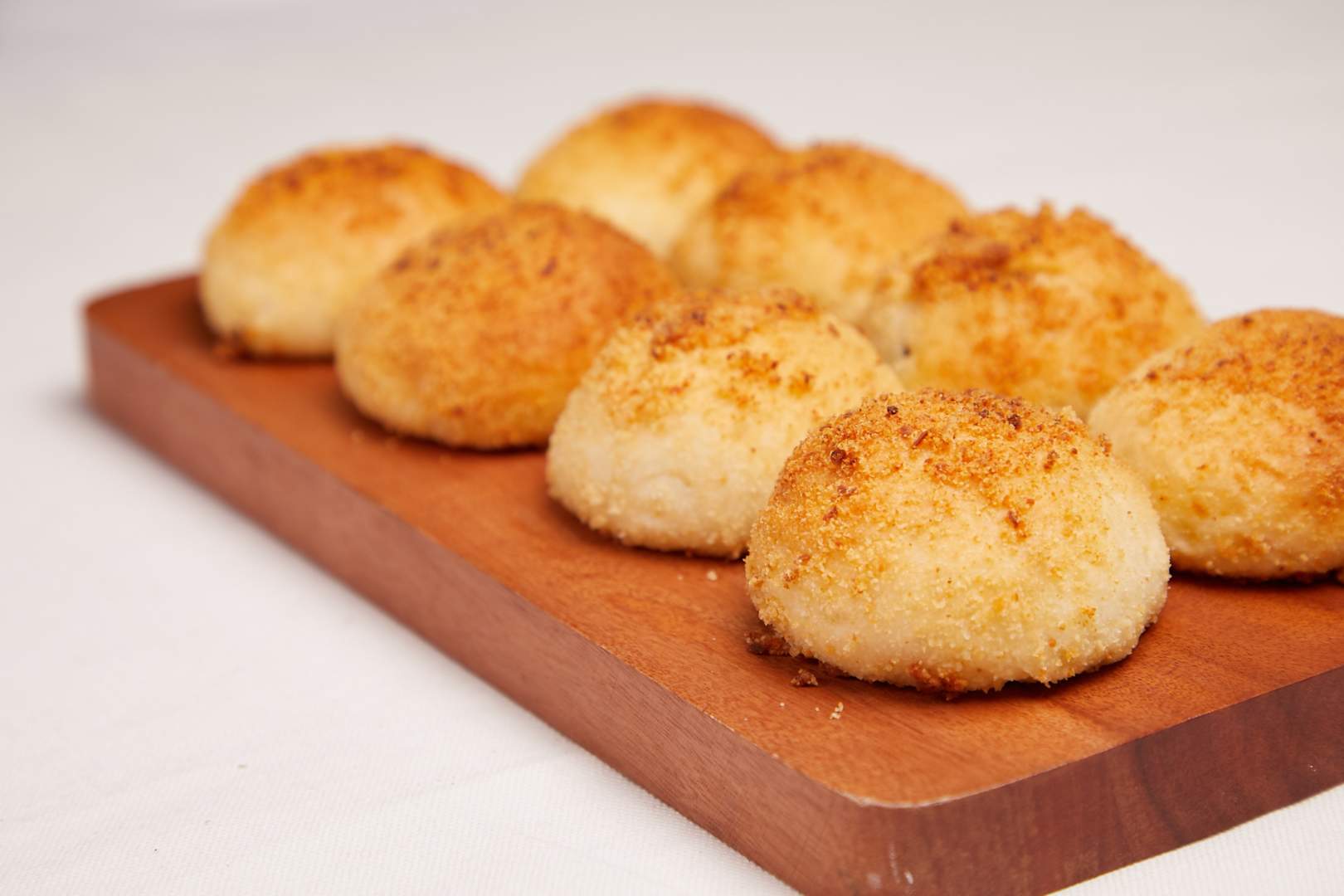 8. Roll filled dough into cheese crumb mixture.
