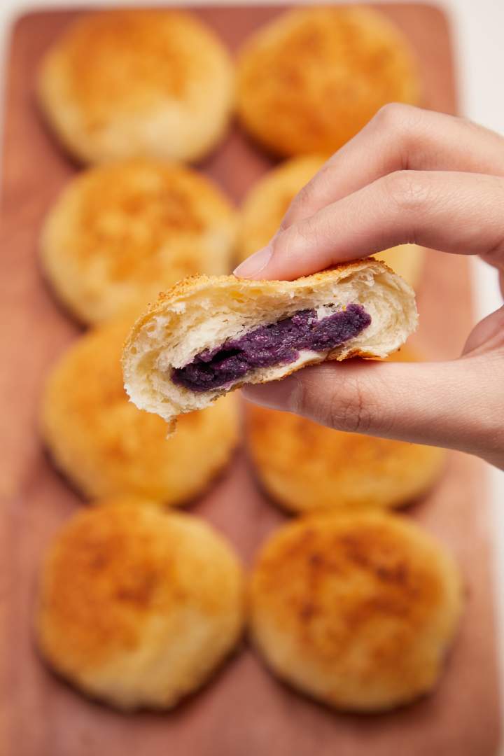 The Filipino Cheese Bread is an afternoon snack favorite and a common small bakery offering. We upgraded the recipe to include an Ube Filling for an even better cheese bread experience!