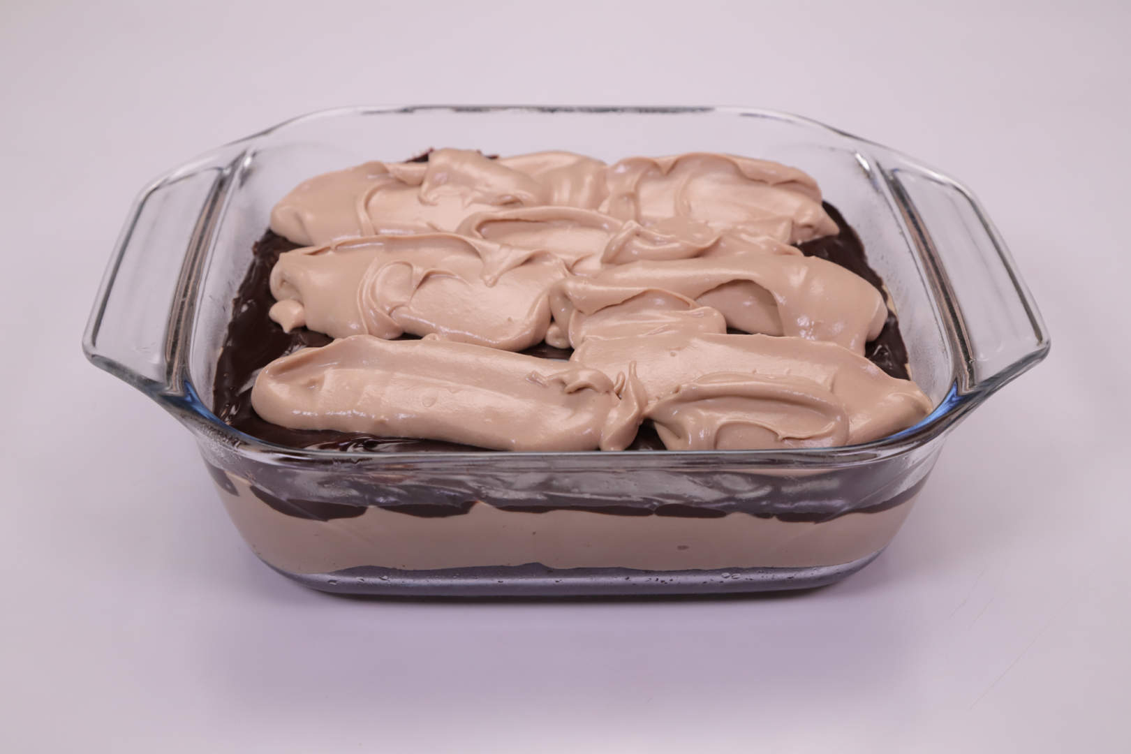 5. Whip cream until stiff peaks form. Fold in prepared chocolate custard, setting aside about ¼ cup of the custard for the topping.