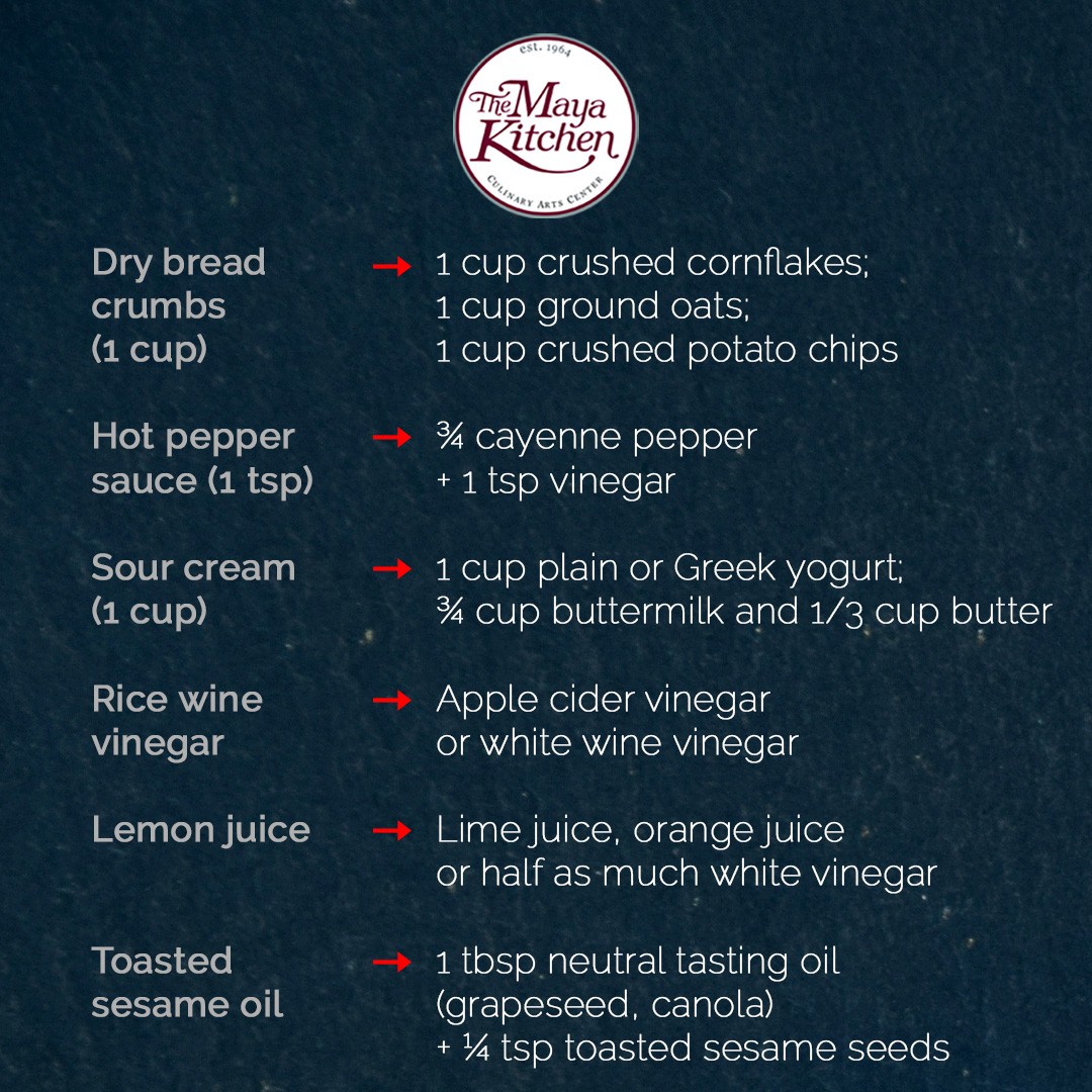 Many of us have started cooking at home, but how do you manage when you can only go to the supermarket every so often? Whenever a recipe calls for an ingredient you don’t have, try these cooking substitutions!