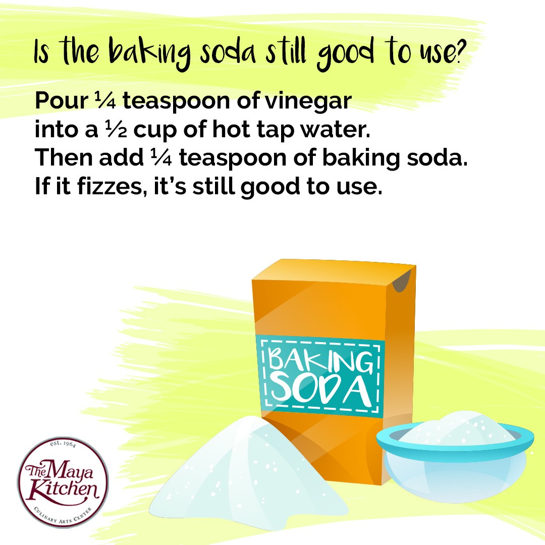Pour ¼ teaspoon of vinegar into a ½ cup of hot tap water. Then add ¼ teaspoon of baking soda. If it fizzes, it’s still good to use.