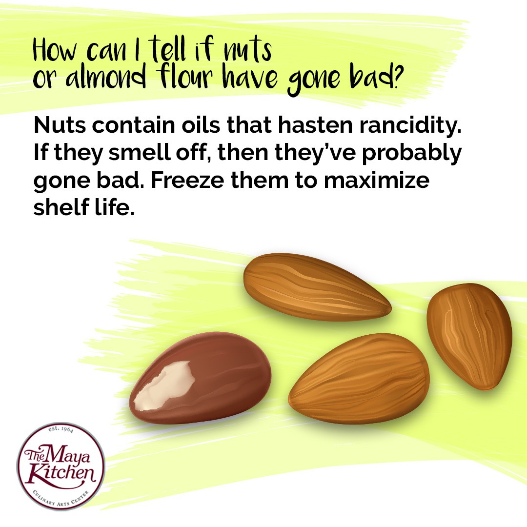 How can I tell if nuts or almond flour have gone bad?