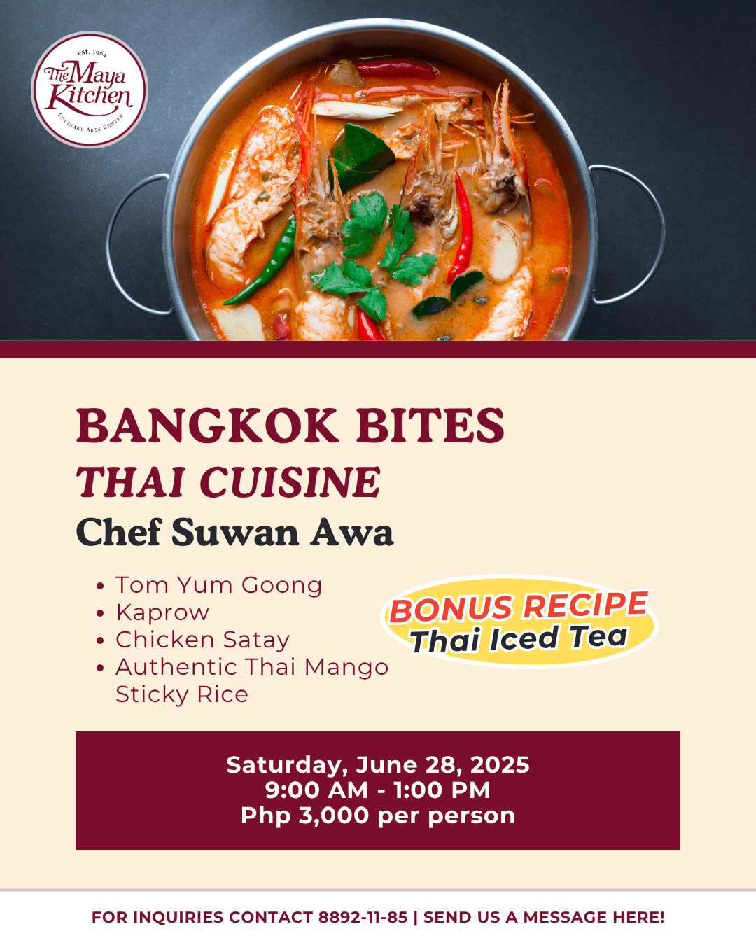 Whether you’re a longtime fan of Thai food or just starting to explore, this hands-on workshop will leave you inspired, satisfied, and ready to recreate the magic at home.